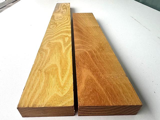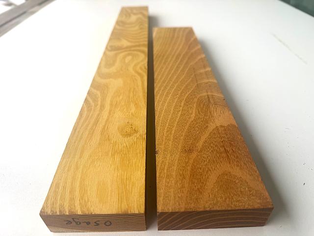 Two flawless and beautiful Osage Orange boards measuring a solid 1" x 2-3/4" x 22-7/8" & 1" x 3" x 15-1/2". One of the most dense domestic hardwoods available and a gorgeous one that is useful for many projects! Lightly surfaced (hit or miss) on two sides and Kiln-dried. Photos are of both sides of the actual pieces you will receive! If you need more than these two pieces, please see our other listings. We have a very limited stock of Osage, so grab what you see while you still can!