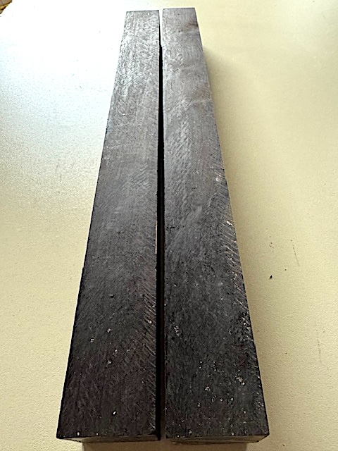 TWO African Blackwood turning squares, measuring 1-1/2" sq. x 16-3/8" & 16-3/4". Air-dried (for many years) and end-sealed with wax. Photos are of the actual pieces you will receive. Many other 1-1/2" squares (and other sizes) available, so if you need more than just these two pieces, please see out other listings.