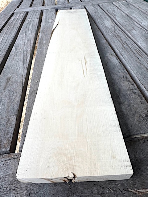 One 4/4 American Holly board measuring 7/8" x 6" x 31-1/2". Kiln-dried and lightly surfaced two sides. Photos are of both sides of the actual piece you will receive. ** Although lots of very nice white holly wood in this board, it does have some knots, a little pith, and a pretty significant crack close to one edge on one side (please see photos). It has been discounted accordingly! Still very useful piece for many projects. Semi-surfaced lumber like this will finish at about 3/4".
